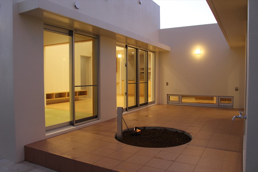O様邸(宮古島) 中庭で季節を感じる暮らし 竣工 2019年10月 構造 鉄筋コンクリート造(壁式構造) 1階建て 敷地面積 437.82㎡(132.44坪) 住宅部分面積(延床面積) 107.74㎡(33.00坪)