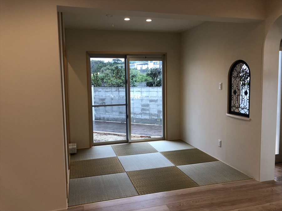 Y様邸(読谷村) ~お庭で遊ぶ~を見守る暮らし 竣工 2015年12月 構造 鉄筋コンクリート造(壁式構造) 1階建て 敷地面積 284.40㎡(86.03坪) 住宅部分面積(延床面積) 96.855㎡(29.29坪)1階/109.11㎡(33.00坪)※駐車スペースを含む