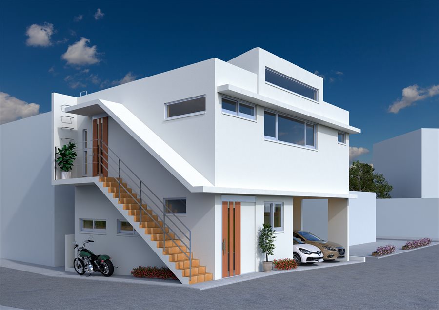 T様邸(那覇市) 二世帯で暮らす~建て替え計画~ 竣工 2021年5月 構造 鉄筋コンクリート造(壁式構造) 2階建て 敷地面積 85.44㎡(25.84坪) 住宅部分面積(延床面積) 1階40.39㎡(12.21坪)2階59.16(17.89坪)